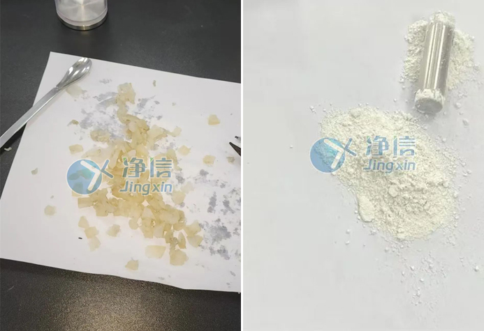 由上圖我們可以看到,經全自動浸入式液氮冷凍研磨儀處理后,塊狀牛皮被研磨成細膩的粉末,達到預期要求,適合后續分析或加工。