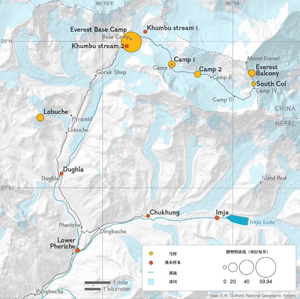 報道稱,“污染嚴(yán)重的樣本來自位于尼泊爾境內(nèi)的珠峰大本營,那里是珠峰上人類活動較集中的地方。每公升積雪含有79個微粒。取樣地點位于海拔8440米處,即位于珠峰峰頂下方408米處,該樣本中每公升積雪含有12個塑料微粒。在珠穆朗瑪峰上發(fā)現(xiàn)的微塑料大都源自合成纖維,包括聚酯纖維和丙烯酸纖維,系制作登山者衣服和裝備所用的材料。”