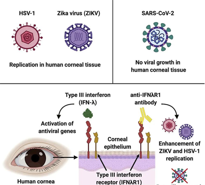 美國《細(xì)胞報(bào)告》雜志近期發(fā)表的一項(xiàng)研究表明,人類眼角膜對(duì)寨卡病毒和單純皰疹病毒1型易感,但似乎對(duì)新冠病毒有抵抗力。在此項(xiàng)研究中,專家們使用了25份角膜組織進(jìn)行實(shí)驗(yàn),其中既包括人類角膜組織,也有實(shí)驗(yàn)鼠供體的角膜組織,并將它們暴露于三種不同的病毒中,分別是:ZIKV、HSV-1和新冠病毒,結(jié)果發(fā)現(xiàn)新冠病毒沒有在角膜中繁殖。至于人角膜和結(jié)膜如何能夠抵抗新冠病毒,該研究團(tuán)隊(duì)還不能完全確定。