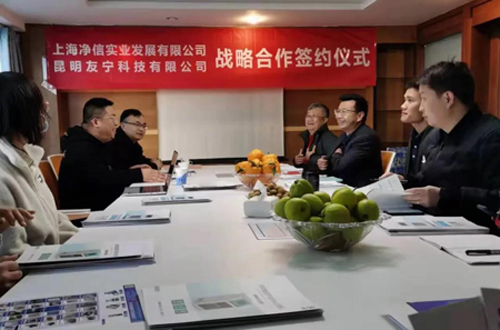 12月28日,上海凈信與昆明友寧科技有限公司舉行戰(zhàn)略合作簽約儀式。以進一步加深雙方戰(zhàn)略合作伙伴關系,營造更優(yōu)質(zhì)的云南市場環(huán)境及氛圍,達成以“共贏、共創(chuàng)、共享”的理念。上海凈信實業(yè)發(fā)展有限公司吳總經(jīng)理及各系列產(chǎn)品總監(jiān), 昆明友寧科技有限公司鄧總經(jīng)理及各部門負責總監(jiān)出席并見證了本次簽約。