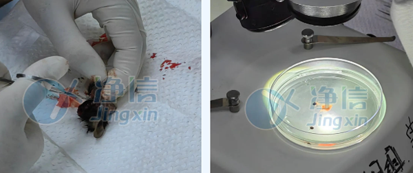 麻醉后、用鑷子撐開小鼠眼瞼,取出眼球,在顯微鏡下小心的從眼球壁上分離出視網(wǎng)膜,將分離出的視網(wǎng)膜放到預(yù)冷PBS緩沖液中。
