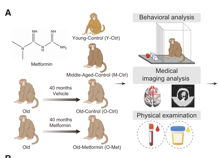 隨著全球人口老齡化的加劇,衰老及其相關(guān)疾病的防治成為亟待解決的重大科學問題。二甲雙胍作為一種經(jīng)典的降糖藥物,近年來被發(fā)現(xiàn)具有顯著的抗衰老效果。然而,其具體作用機制尚不明確。為了深入研究二甲雙胍對靈長類動物衰老的影響,劉光慧團隊展開了長達8年的研究。