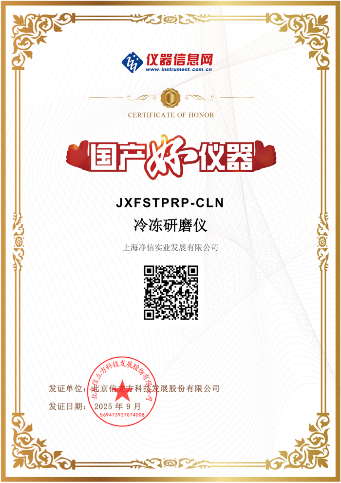 在國(guó)產(chǎn)科學(xué)儀器崛起的浪潮中,上海凈信實(shí)業(yè)發(fā)展有限公司的兩款“明星產(chǎn)品” ——冷凍研磨儀 JXFSTPRP-CLN與冷凍耐酸堿真空離心濃縮儀 JX-ZLN-EL,憑借優(yōu)異的性能、可靠的品質(zhì),成功入選 “國(guó)產(chǎn)好儀器” 榜單。這不僅是對(duì)上海凈信技術(shù)實(shí)力的高度認(rèn)可,更是國(guó)產(chǎn)儀器在科研領(lǐng)域 “硬實(shí)力” 的生動(dòng)體現(xiàn)。