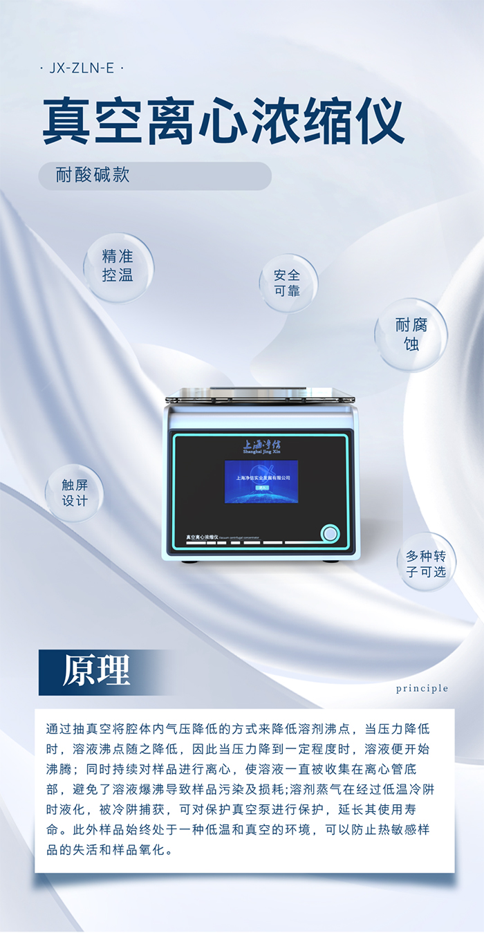 耐酸堿真空離心濃縮儀,整機防腐處理,耐酸堿耐有機溶劑設(shè)計。可用于化學、生物、醫(yī)藥等領(lǐng)域的樣品制備和分析,在生命科學領(lǐng)域中,常用于分離和濃縮蛋白質(zhì)、核酸和其他生物分子。真空離心濃縮是一種將溶劑蒸發(fā)出去以濃縮或干燥生物(非生物)樣品的過程。采用離心力、真空和加熱相結(jié)合的方法使樣品中的溶劑快速蒸發(fā),從而達到離心濃縮樣品的目的,方便后續(xù)實驗的分析和檢測。