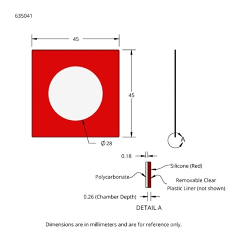 635041 | 28 mm x0.26mm,約180微升 | 45 x 45 mm | 25片 |
