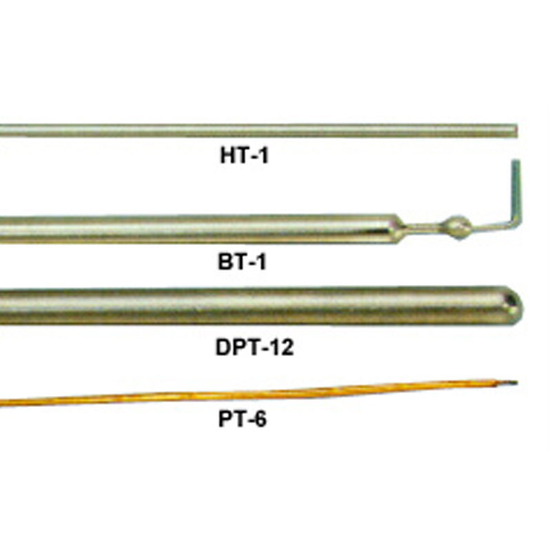 3. BT-1 –用于探測固體的表面溫度,也用于探測液體,氣體和半固態物體。也許是我們最好的通用探測器。焊接不銹鋼軸、塑柄。頂部是 .02"直徑的直角彎探頭,方便準確地進行表面測量。 5 英尺。 渾然一體。.最高頂部溫度 240°C。時間常數0.15 秒。 不是獨立的。