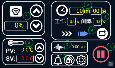 頻率、溫度、功率、時間等顯示