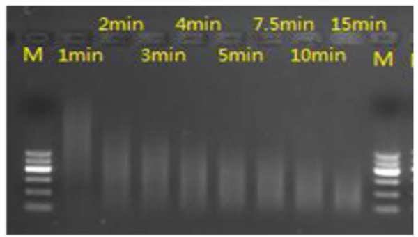 4.相同處理時長的樣本混合后,瓊脂糖凝膠電泳檢測結(jié)果: