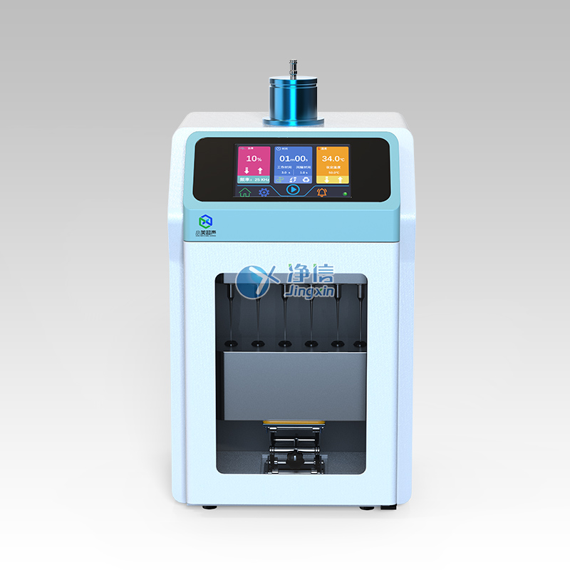 4、超聲破碎是聲化學設備的一種應用,可用于植物提取,水處理、固液系分散、液體中顆粒的解團聚、促進固液反應等效果,使較大粒徑的聚集體分散為較小的顆粒。穩定化指保證粉體顆粒在液體中保持長期的均勻分散等。